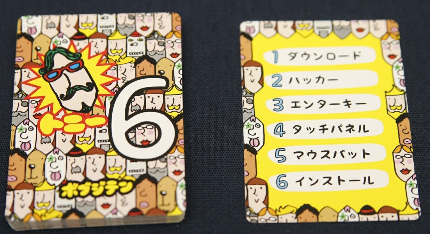 カタカナ50音の練習プリント、こちらは1文字ずつ練習になっています。 2文字ずつ練習のプリントはコチラ: カタカナ練習2文字。 授業時期は1年生2学期に入ってからですが、私はカタカナに関しては 就学前にある程度のレベルに到達している事が理想的だと感じています。 ① お題を決める スタートプレイヤーは山札から1枚とり、お題を確認します。 手札に書かれた6つのワードのうち、山札に見えている数字のワードがお題になります。 ② カタカナ語を使わずにお題を伝える